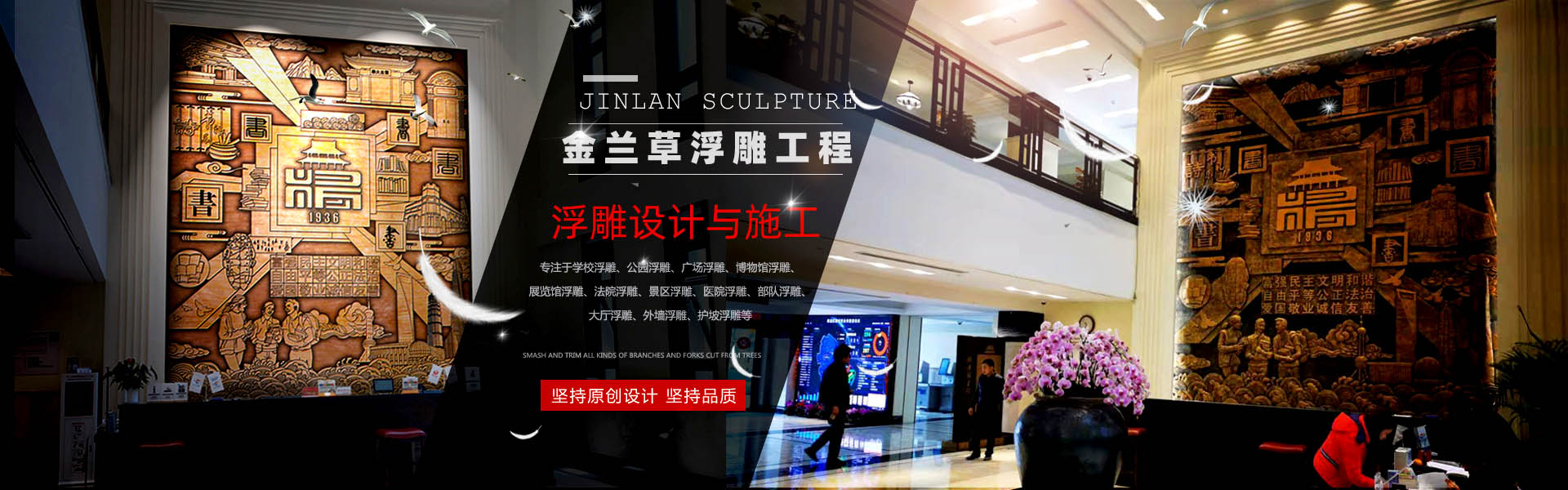 金蘭草浮雕專注于浮雕原創(chuàng)設計與定制服務,精雕細琢,力求精妙絕倫,服務中高端客戶。學校浮雕、公園浮雕、廣場浮雕、法院浮雕、景區浮雕、軍事浮雕、醫院浮雕、博物館浮雕、展覽館浮雕、大廳浮雕、外墻浮雕、護坡浮雕。
